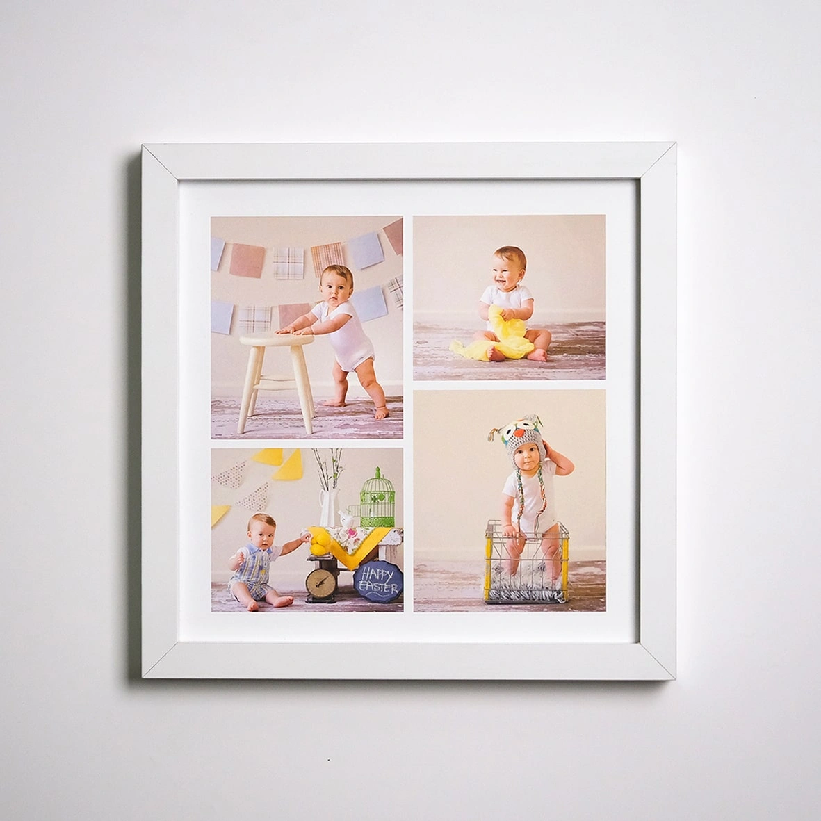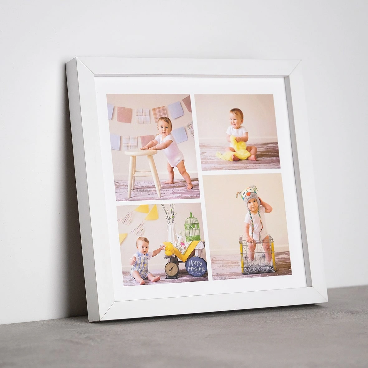*Bu 25x25 kolaj beyaz çerçeve, dört farklı fotoğrafınızı bir araya getirerek anılarınızı şık bir şekilde sergilemenin mükemmel yolunu sunar.