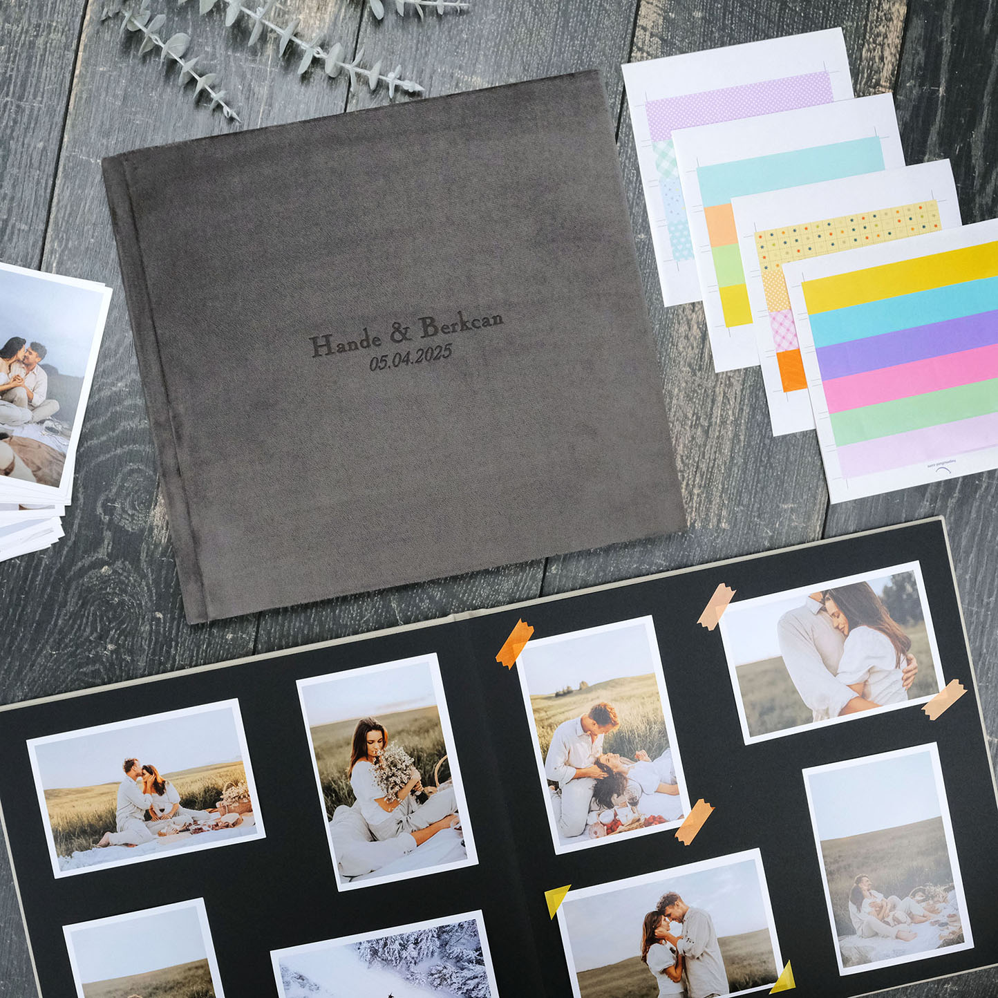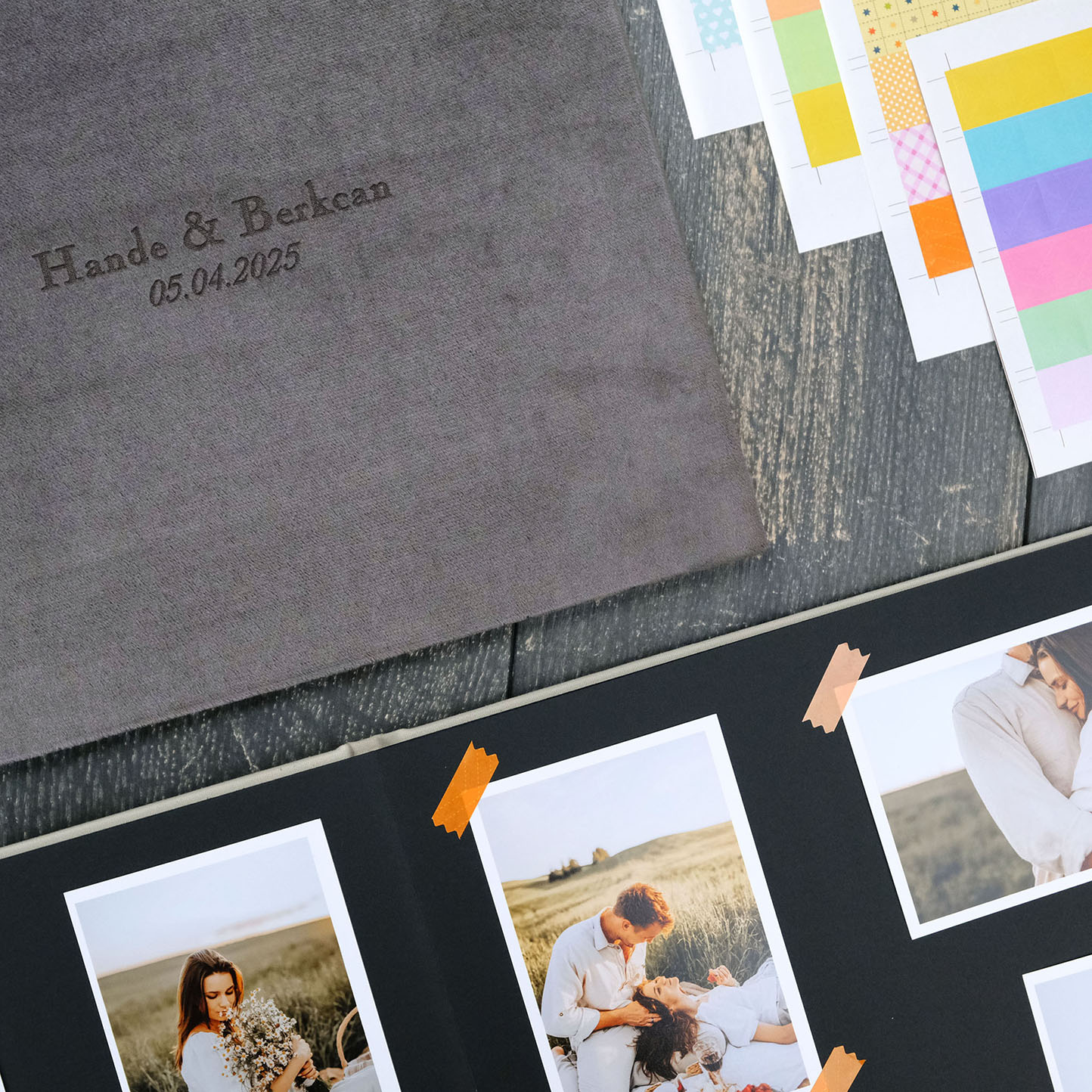 Büyük Anı Albümü ve 36 adet Fotoğraf Baskı - Gri Kadife Soru Cevap