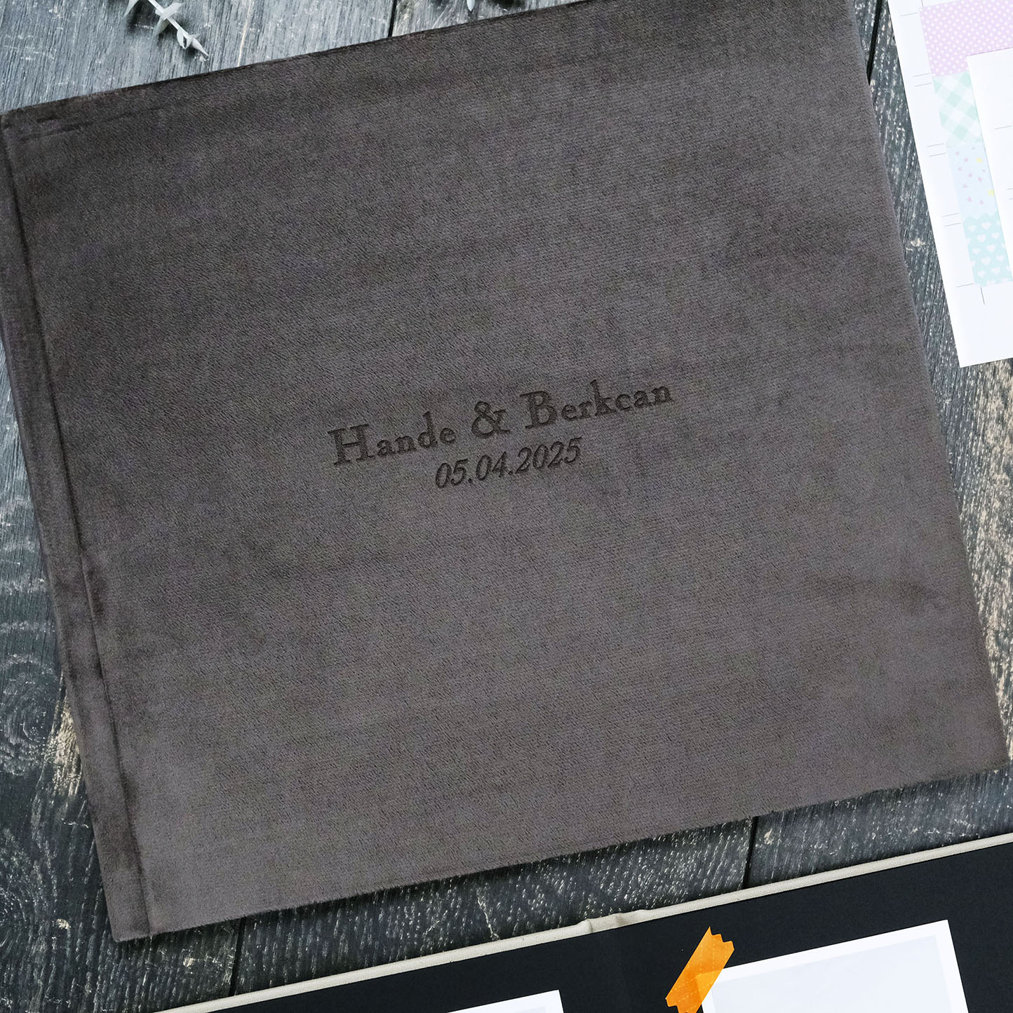 Büyük Anı Albümü ve 36 adet Fotoğraf Baskı - Gri Kadife