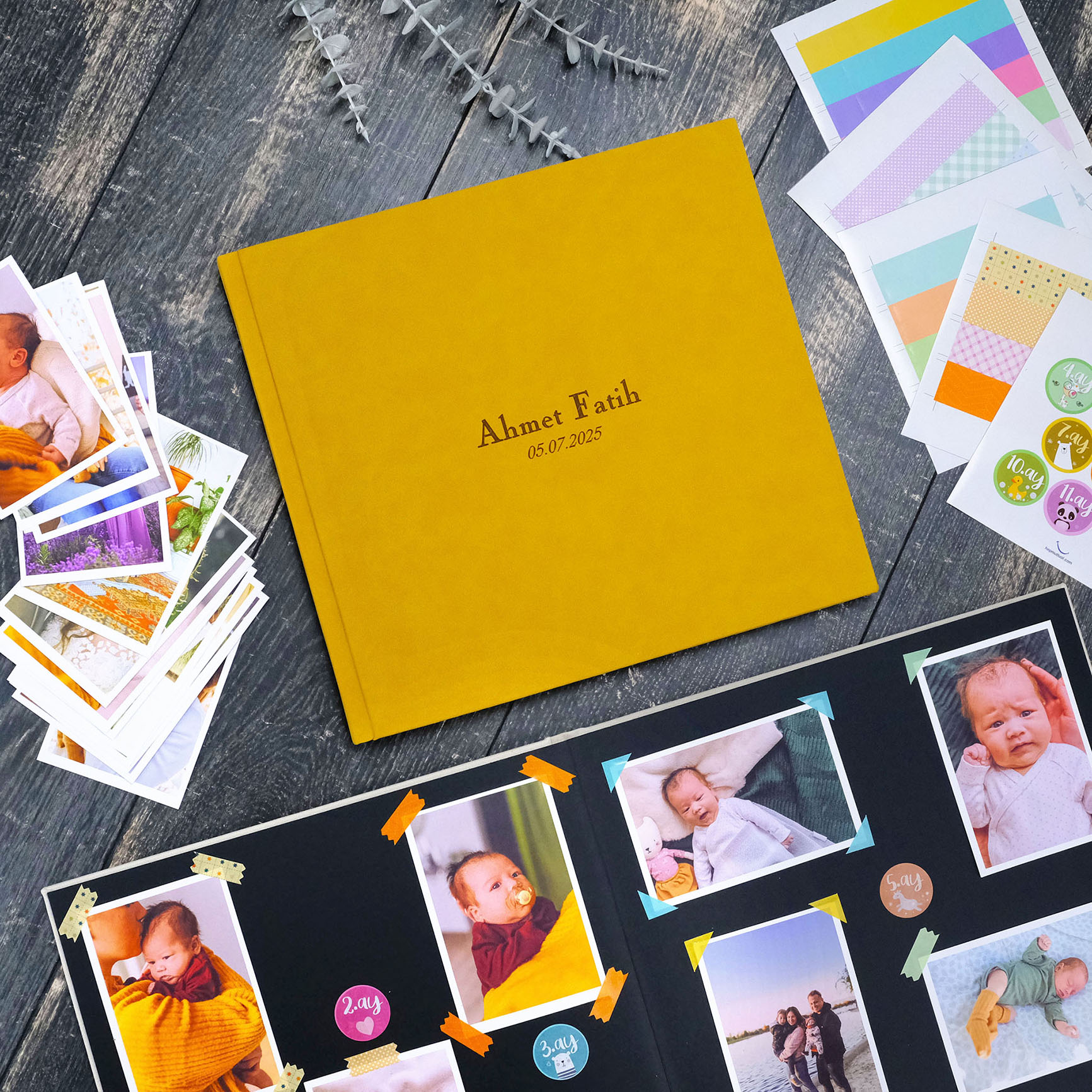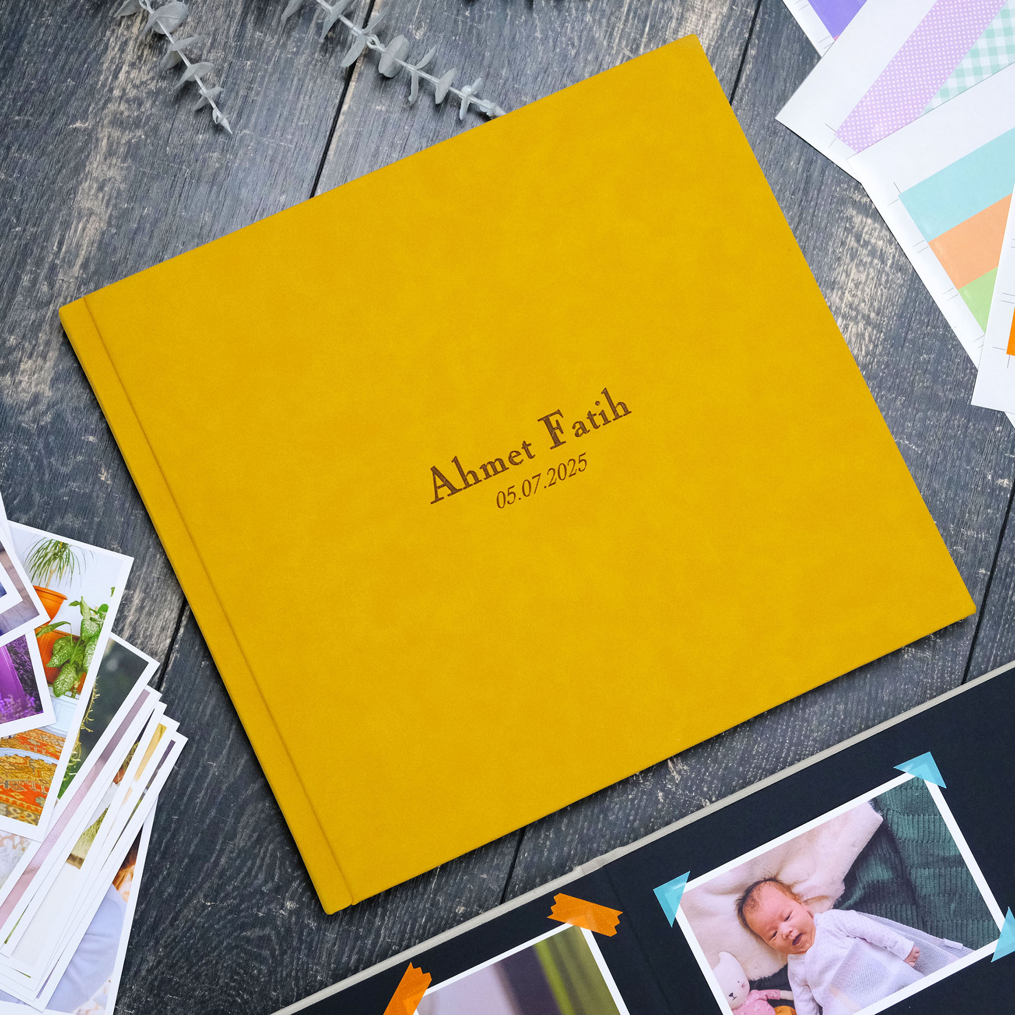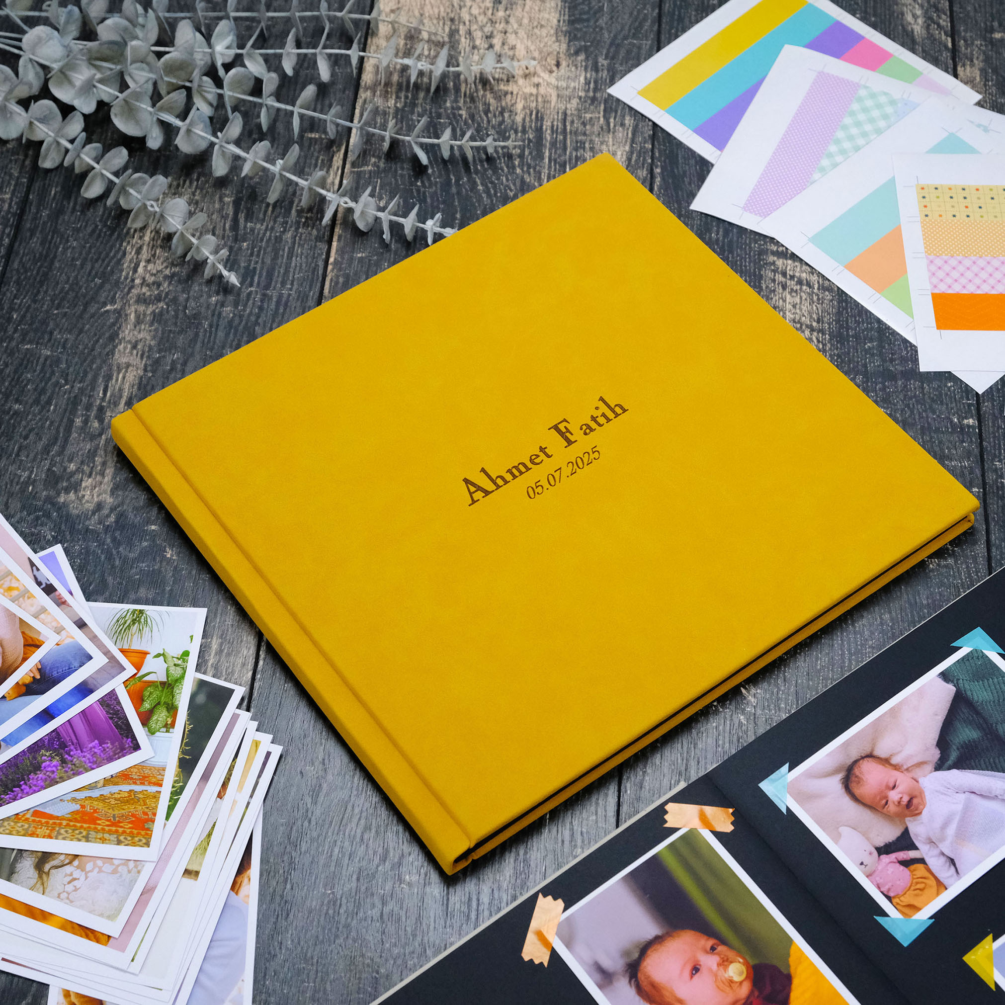 Büyük Anı Albümü ve 36 adet Fotoğraf Baskı - Hardal sarısı Nubuk