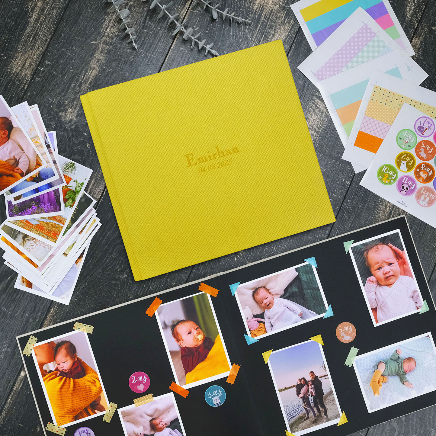 * Özel anılarınızı saklamak için en şık ve dayanıklı çözümlerden biri olan Büyük Anı Albümü ve 36 adet Fotoğraf Baskı – Hasır Sarı, modern dokuma görünümlü hasır sarı rengiyle zarif ve sıcak bir stil sunar.