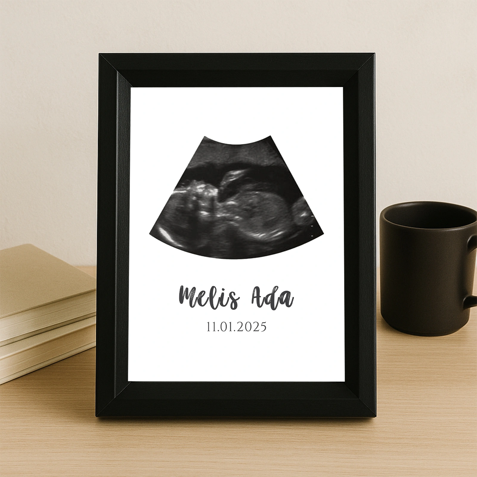 * Bebeğinizin ilk mucizevi görüntüsünü ölümsüzleştirmeniz için tasarlanan bu özel ultrason çerçevesi, 15x21 cm ölçüsüyle hem şık hem de anlamlı bir sunum sağlar.