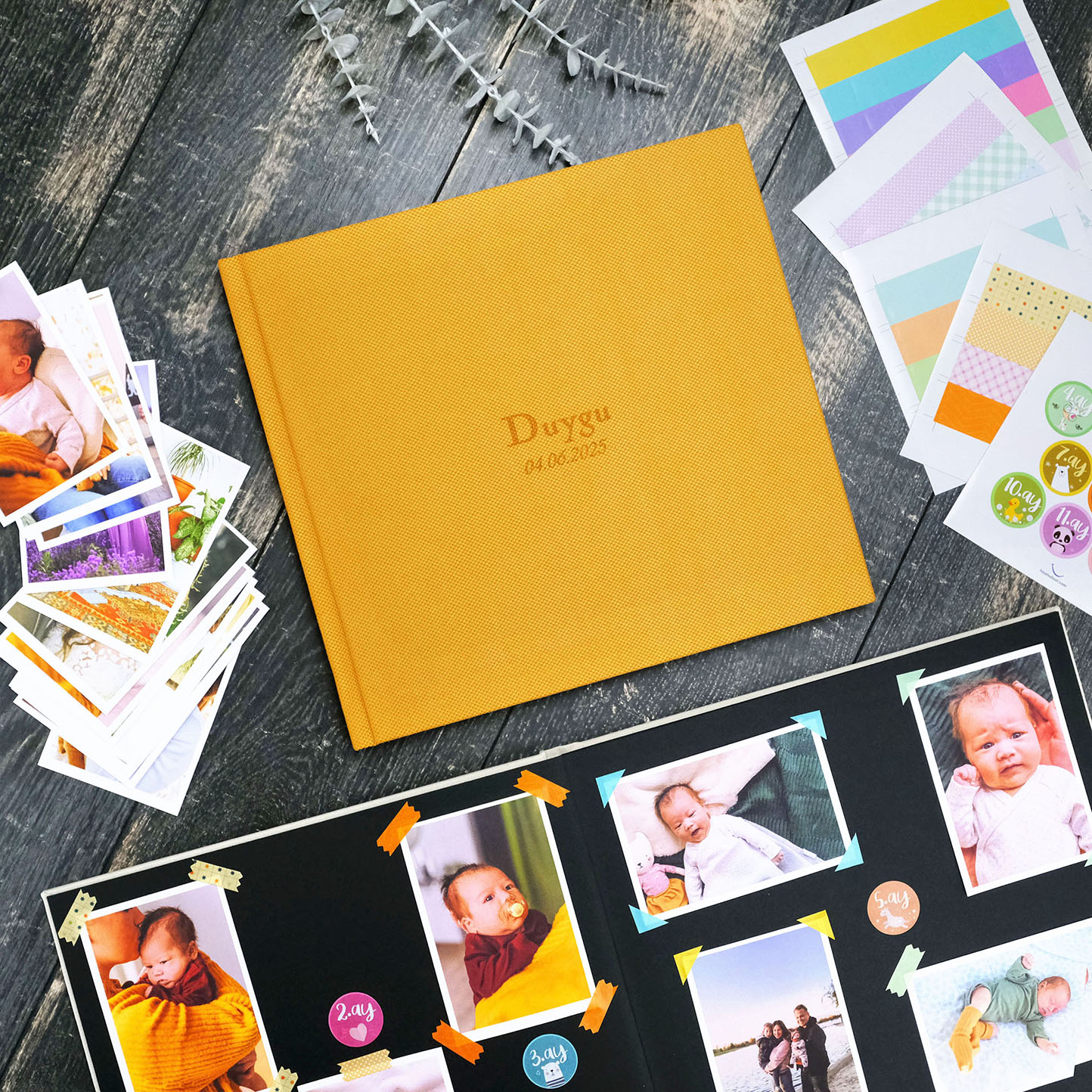 Büyük Anı Albümü ve 36 adet Fotoğraf Baskı Hasır Hardal