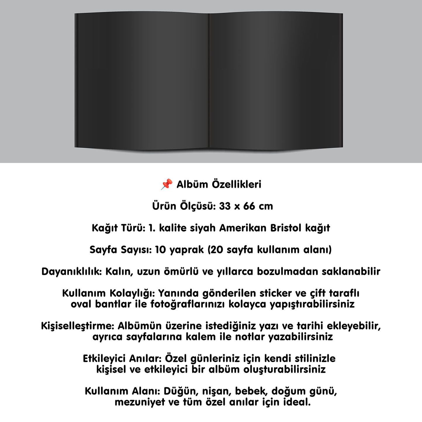 🖊️ Kişiselleştirme: Albüm kapağına isim ve tarih eklenebilir, sayfalarına not yazabilirsiniz