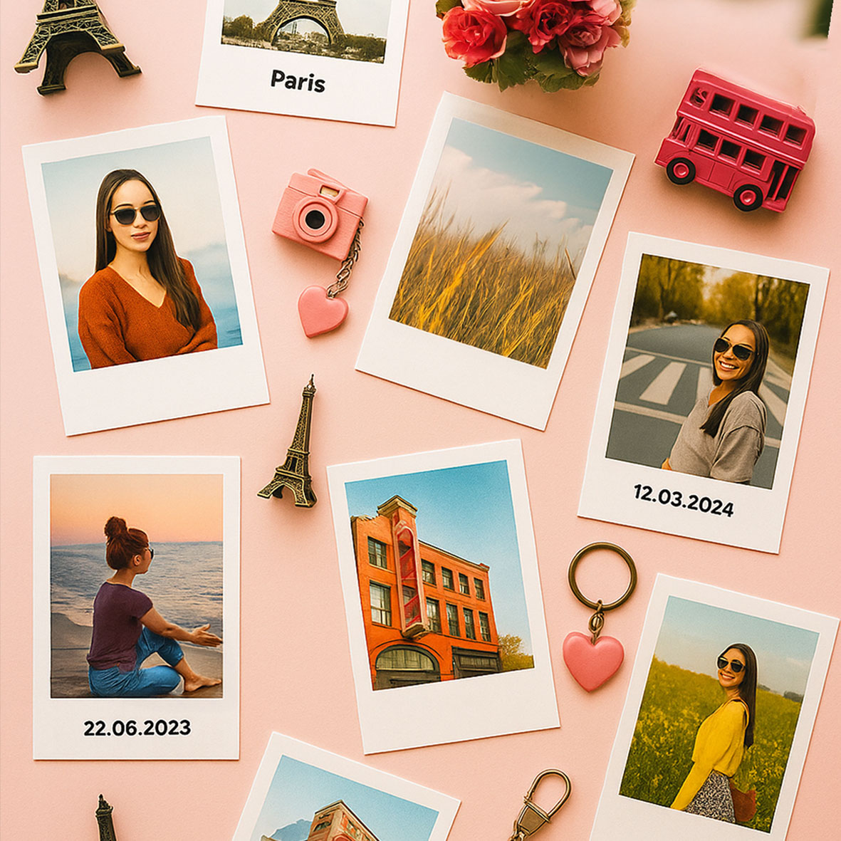* Mini pola baskı fotoğrafları ile geçmişe dönüş yapın ve vintage bir atmosfer yaratın.